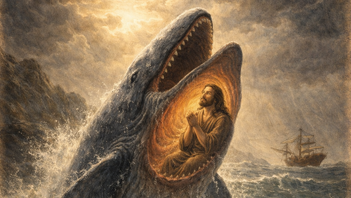 Kender du til at få besked om at gøre noget, du slet ikke har lyst til at gøre? Dette skete engang for Jonas. Han fik besked på at gå ind til storbyen og fortælle folkene om alt det Gud var sur på dem over. For at slippe for at gøre det, prøvede Jonas at rejse langt væk, men i stedet blev han slugt af en hval. Han var i hvalens mave i 3 dage.